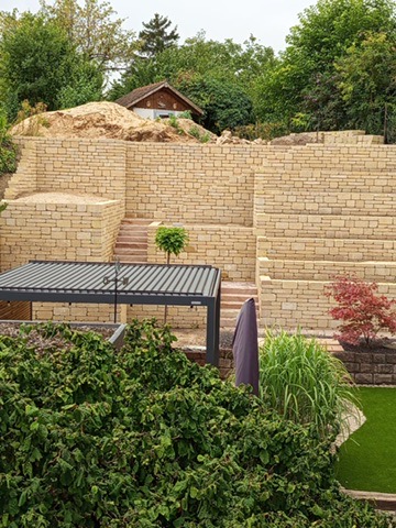 - Stabile, langlebige Mauerkonstruktion auf tragfähigem Betonfundament